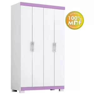 Guarda Roupa Acp 4Pt Juliana Branco/Rosa/Azul/Lilás Cod: 693174