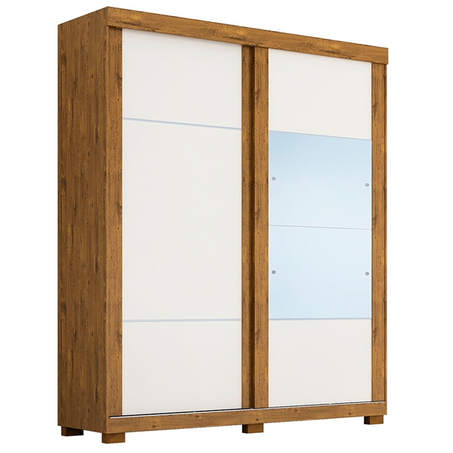 Possui 02 portas de correr, tendo 01 porta com espelhos