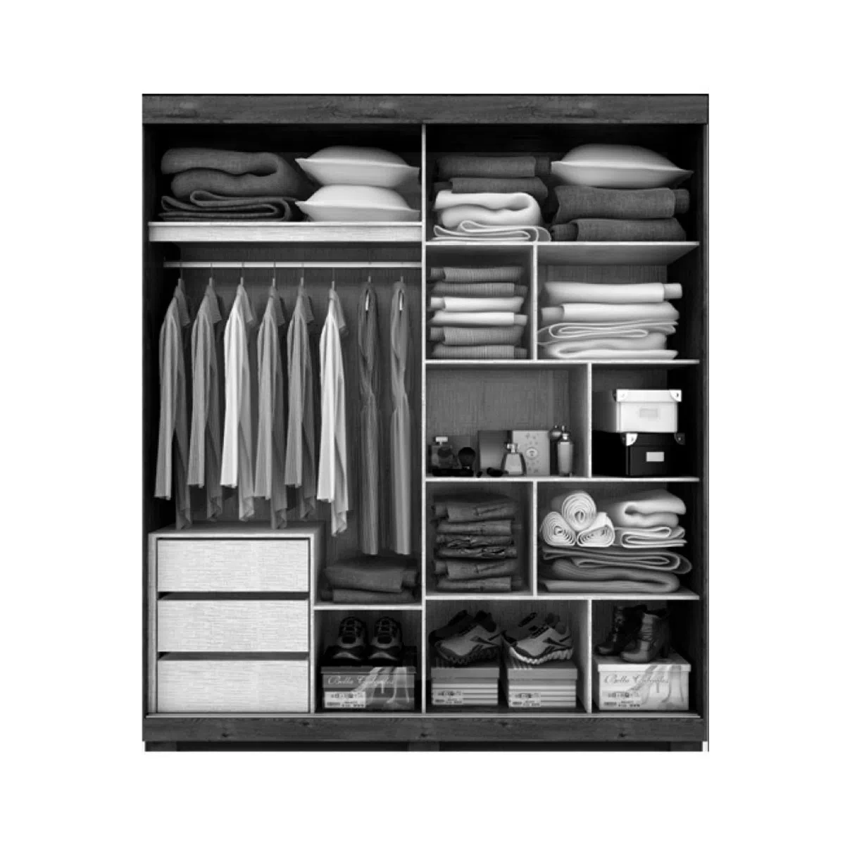 Pintura interna linho, cabideiro e trilho inferior em alumínio