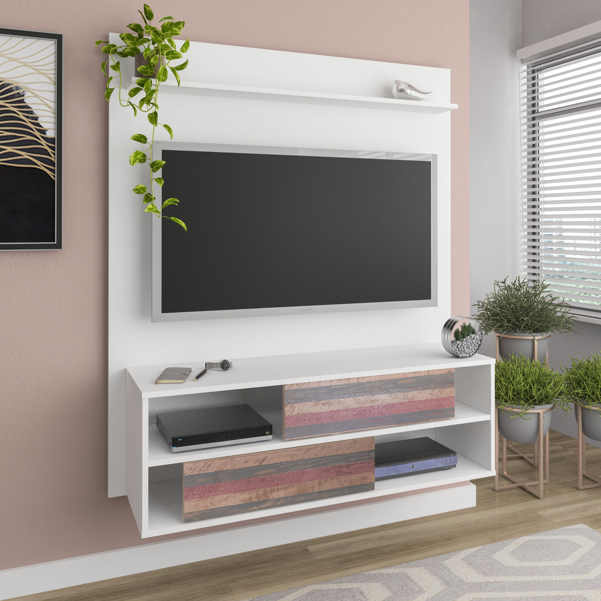 Aproveite seus momentos de relaxamento em frente à TV e ainda deixe sua casa mais bela e moderna com o Painel Dallas, ideal para acomodar sua TV, seus equipamentos e várias decorações, deixando o ambiente mais completo e integrado! O design versátil do Painel Dallas se adapta ao seu estilo e personalidade, deixando a casa do jeito que você gosta!